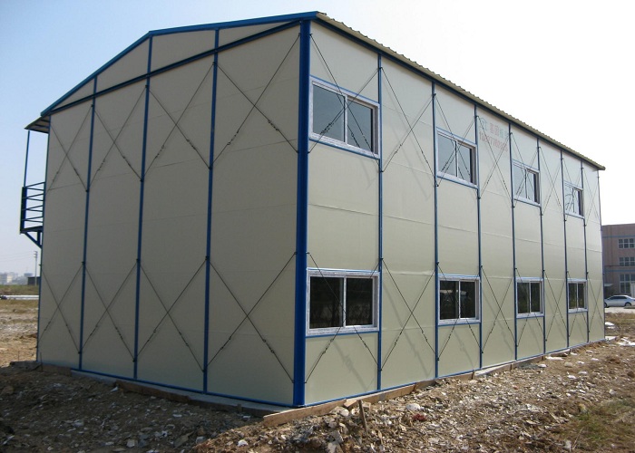 (2)成都活動(dòng)板房應(yīng)注意防風(fēng)。彩鋼板活動(dòng)房重量輕結(jié)構(gòu)簡單抗風(fēng)能力弱,為提高抗風(fēng)能力請(qǐng)客戶盡量選擇正規(guī)廠家的板房,不要只顧價(jià)格便宜而留下后患。對(duì)已經(jīng)安裝了沒有抗風(fēng)能力的板房客戶可以在屋頂上沿板房長度的方向在前、后墻體的上方用鉆尾絲固定4×4角鋼等措施加以補(bǔ)救;